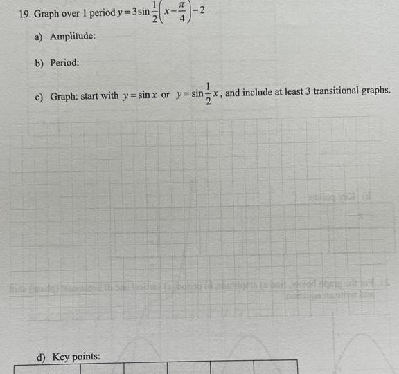 19 Graph over 1 period y 3sin a Amplitude b Period c Graph start with y sinx or y sin x and include at least 3 transitional graphs 2 d Key points Feuile THE