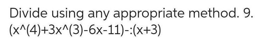 Divide using any appropriate method 9 x 4 3x 3 6x 11 x 3