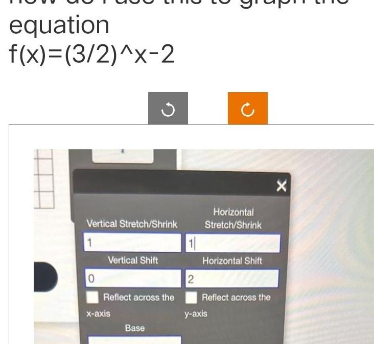 equation f x 3 2 x 2 Vertical Stretch Shrink 0 Vertical Shift Reflect across the x axis Base 2 5 Horizontal Stretch Shrink Horizontal Shift Reflect across the y axis X