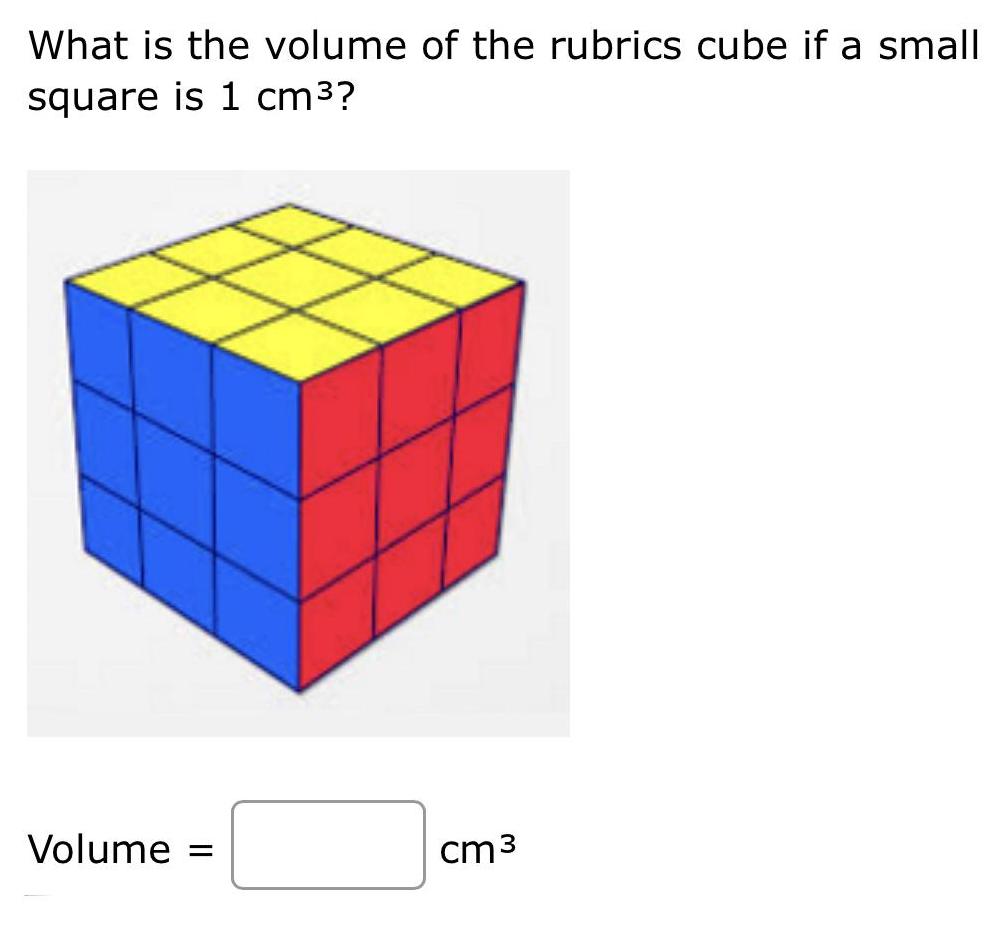 What is the volume of the rubrics cube if a small square is 1 cm Volume cm