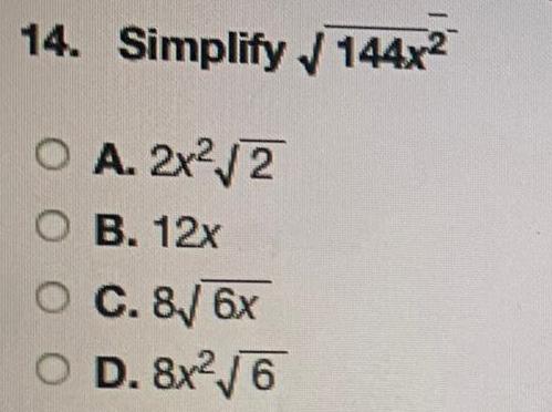 Basic Math15 What is the discriminant in the quadratic equation x 11x 121 x 96 OA 0 OB 200 C 20 OD 100