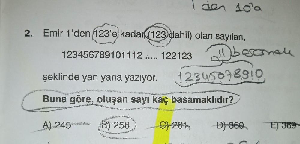 2. Emir 1'den 123'e kadar (123 dahil) olan sayıları, 123456789101112...... 122123 B) 258 den 10'a şeklinde yan yana yazıyor. Bun