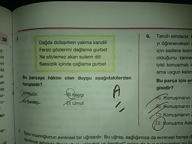6. 38 Dağda dolaşırken yakma kandili Fersiz gözlerimi dağlama gurbet Ne söylemez akan suların dili Sessizlik içinde çağlama gurbet Bu parçaya hâkim olan duygu aşağıdakilerden hangisidir? Hüzün -B) Kaygi Sevinc- D) Umut Tercih elindedir, yı öğreneceksin için sadece bom olduğunu zanne iyisi konuşmak i ama uygun kelim Bu parça için er gisidir? A Konuşmanın BT Konuşmanın C) Konuşmanın p) Konuşma Ada 1. Spor insanoğlunu denilince akla sanoğlunun evrensel bir uğraşıdır. Bu uğraş, sağlığımıza da evrensel barsa d mice aklımıza ab o loubol ve hentbol golpe de buholcondensuu
