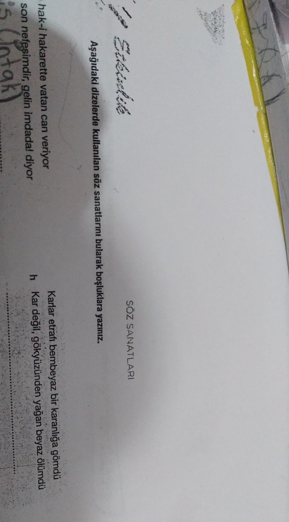 SÖZ SANATLARI Etkiulite Aşağıdaki dizelerde kullanılan söz sanatlarını bularak boşluklara yazınız. hak-i hakarette vatan can ver